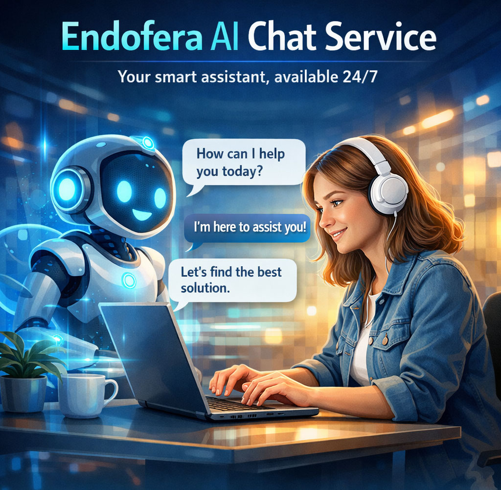 Endofera AI Chat ei ole pelkkä botti – se on virtuaalinen asiantuntija, joka palvelee jokaisen asiakkaasi yhtä huolellisesti. Nopeammat vastaukset, tyytyväisemmät asiakkaat ja tehokkaampi liiketoiminta alkavat tästä.